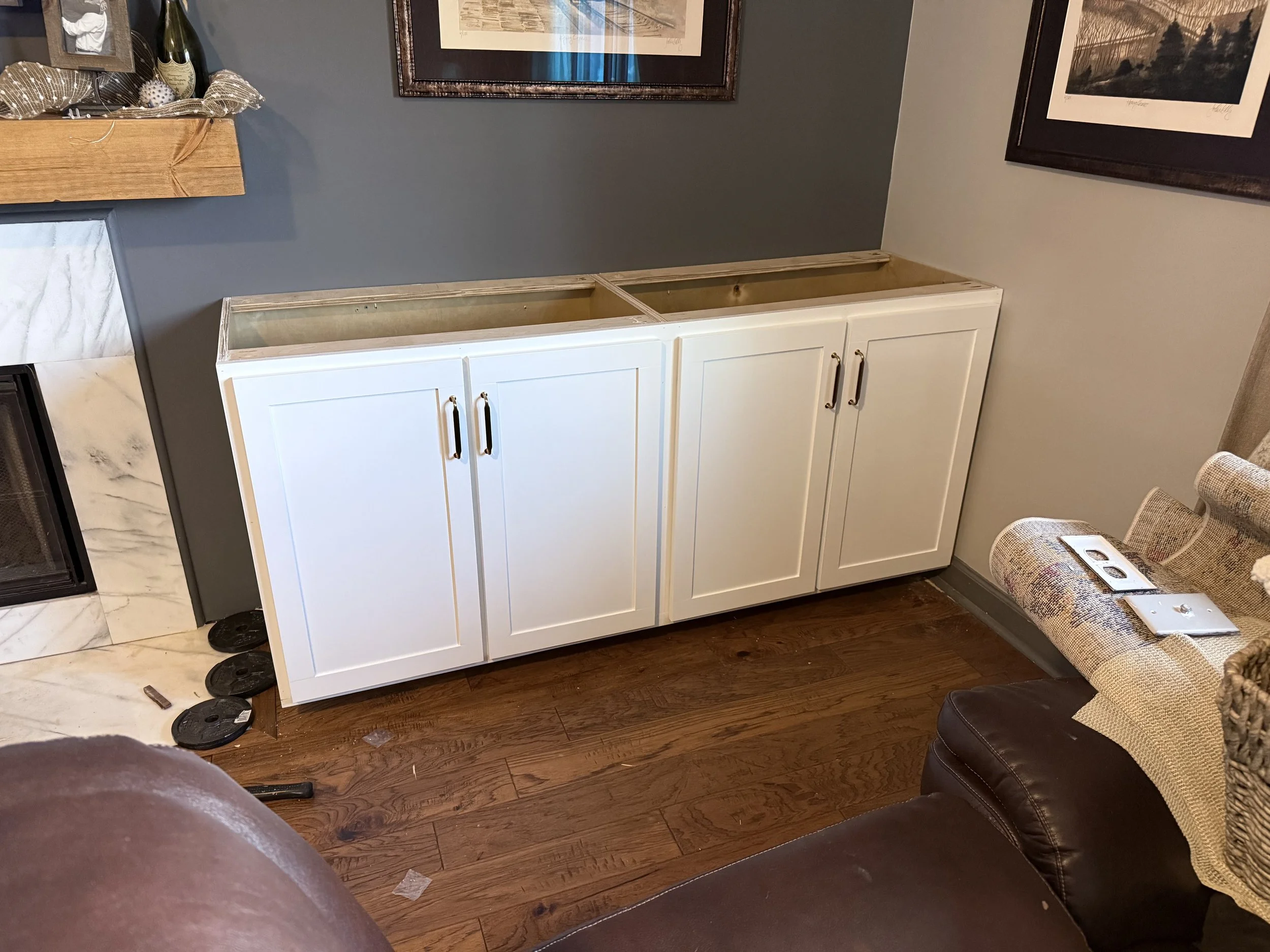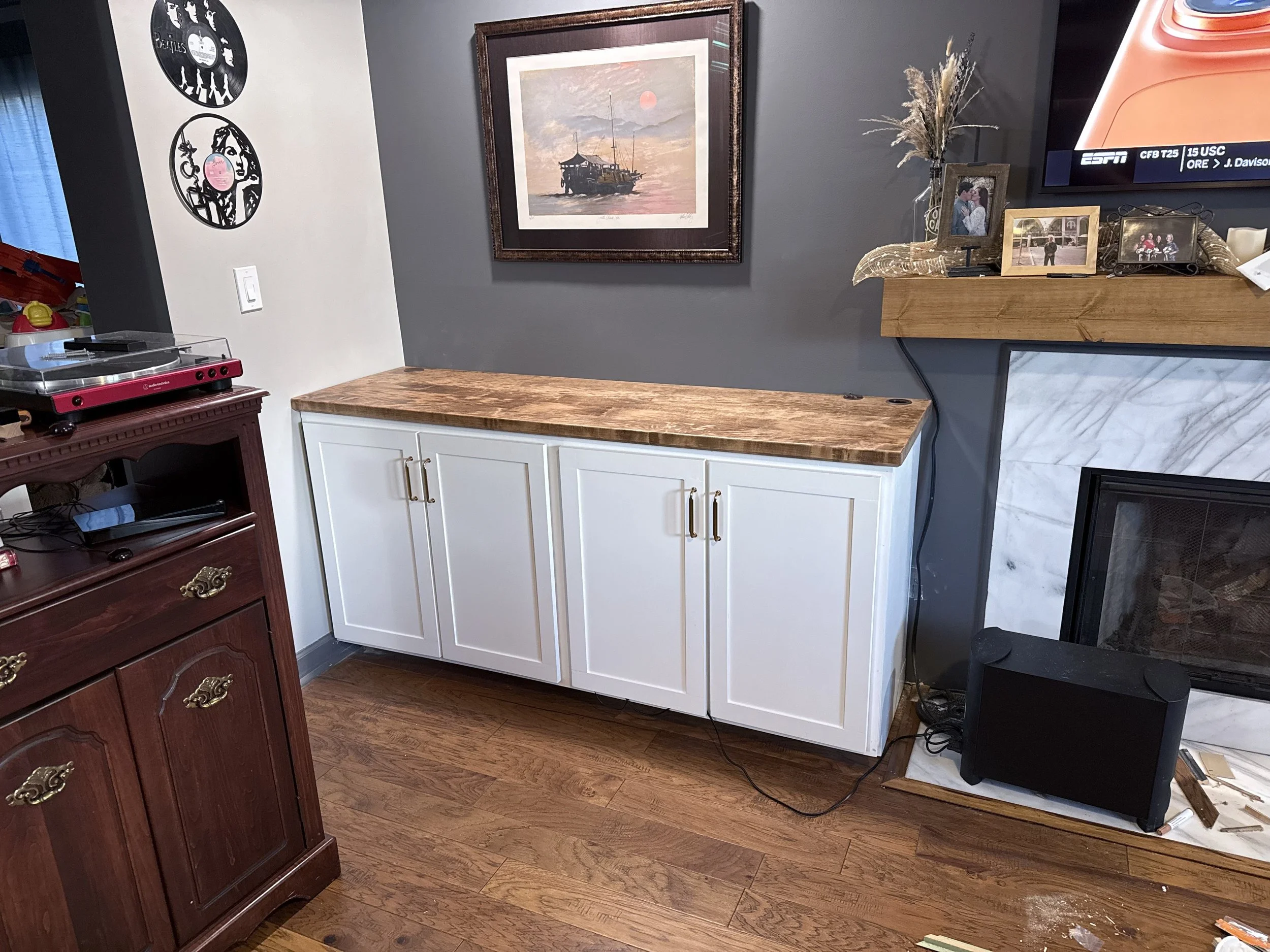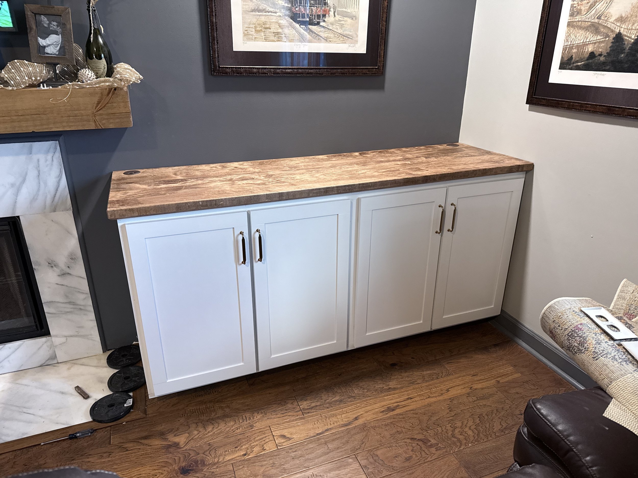 Built-in CabinetsThese handcrafted built-ins were custom designed to frame a fireplace with clean shaker styling and durable maple tops. Each piece was built in my one-man shop and finished on-site to perfectly fit the client’s home.