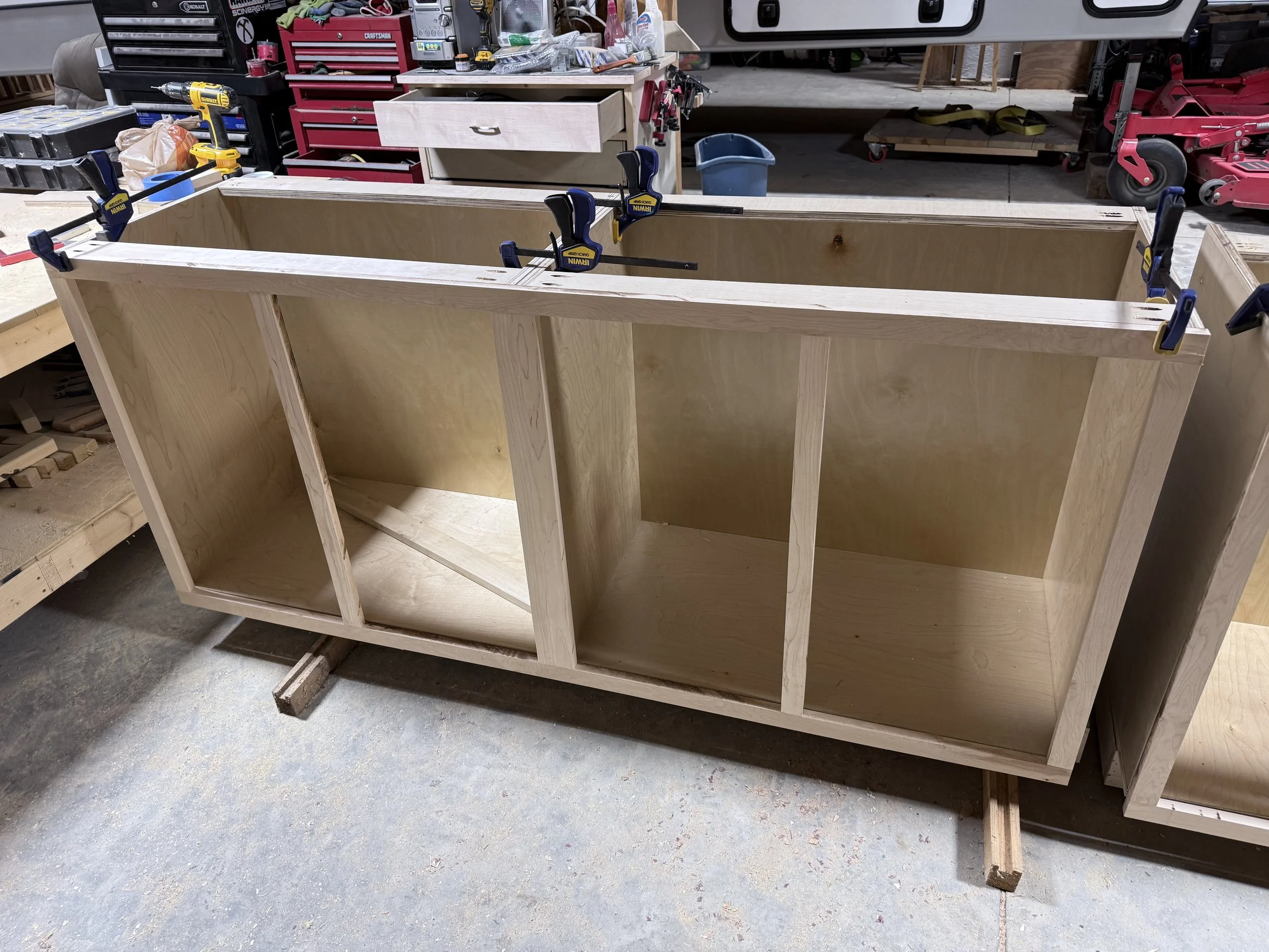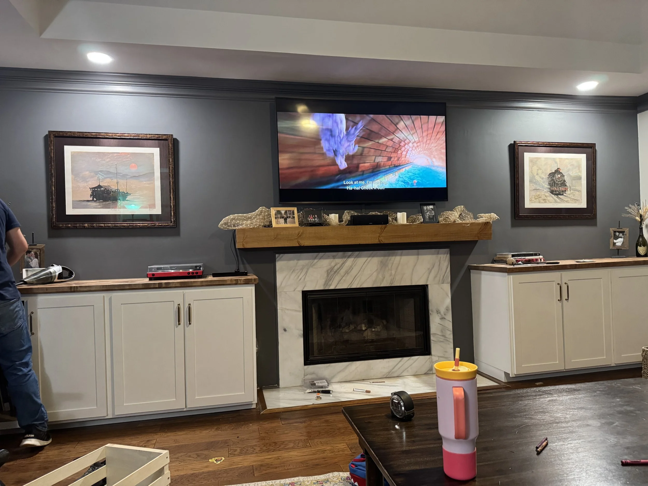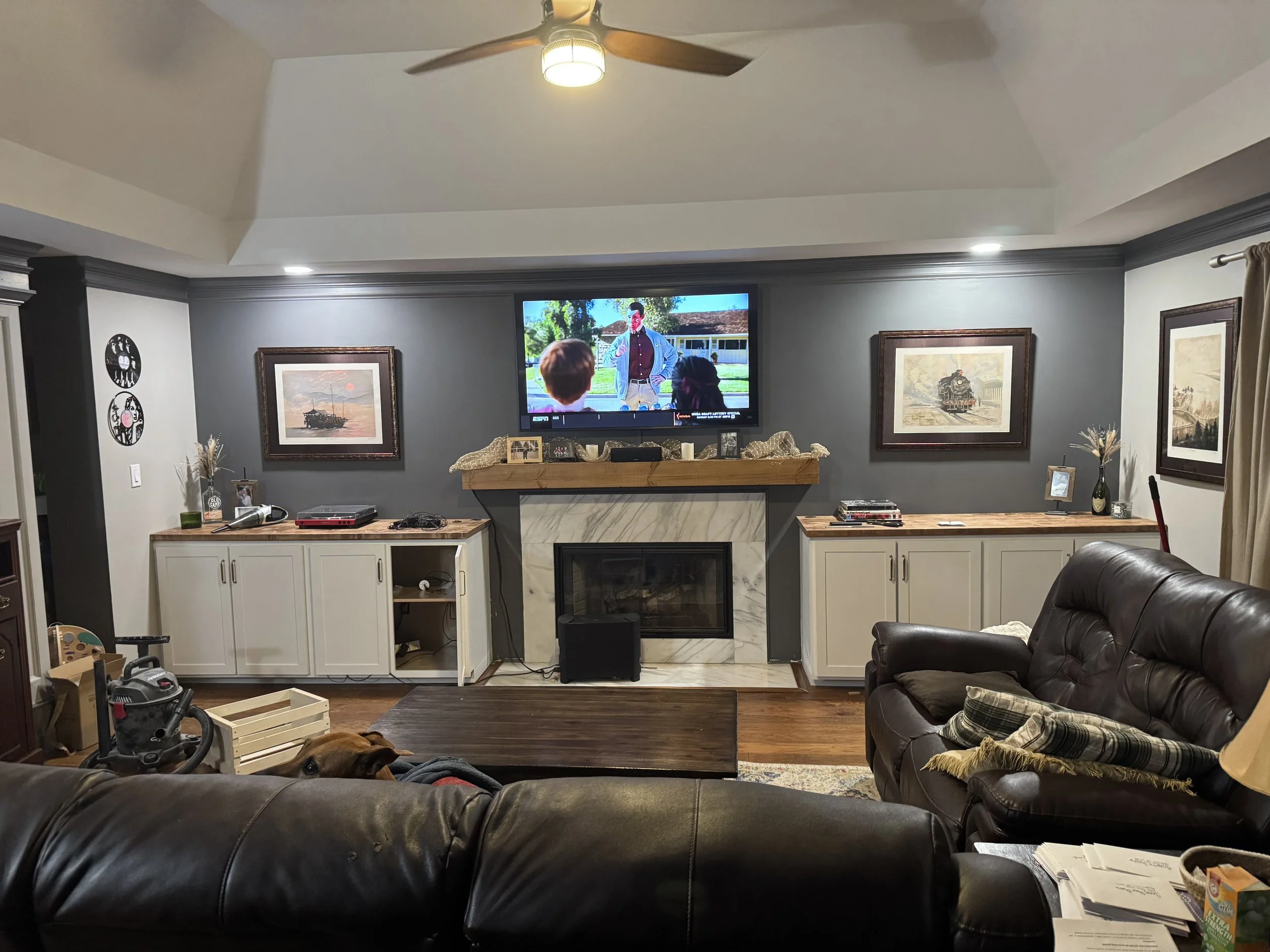 Built-in CabinetsThese handcrafted built-ins were custom designed to frame a fireplace with clean shaker styling and durable maple tops. Each piece was built in my one-man shop and finished on-site to perfectly fit the client’s home.